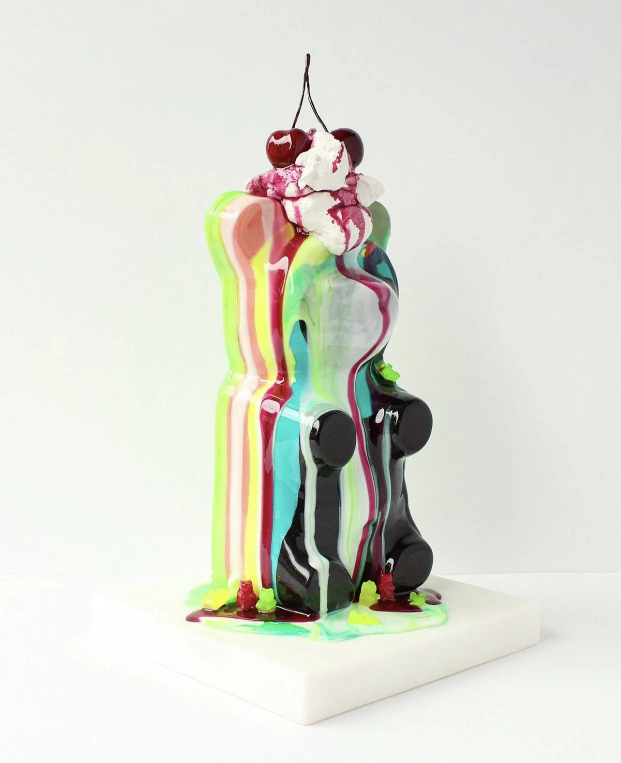 My sculptures depict the idea of a sugar-coated existence, a reflection of excess and indulgence within popular culture. The confectionary theme is a vessel to tell a story about nostalgia, satire, and humor.